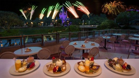 You’ll start your experience by visiting Tomorrowland Terrace Restaurant, where you’ll enjoy a tempting range of desserts and beverages. You’ll have a reserved table for 60 minutes before the show starts, giving you plenty of time to enjoy your treats.