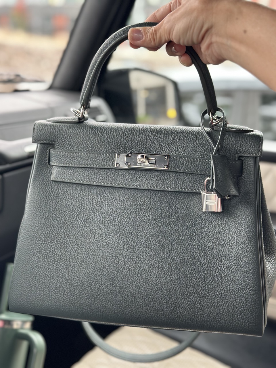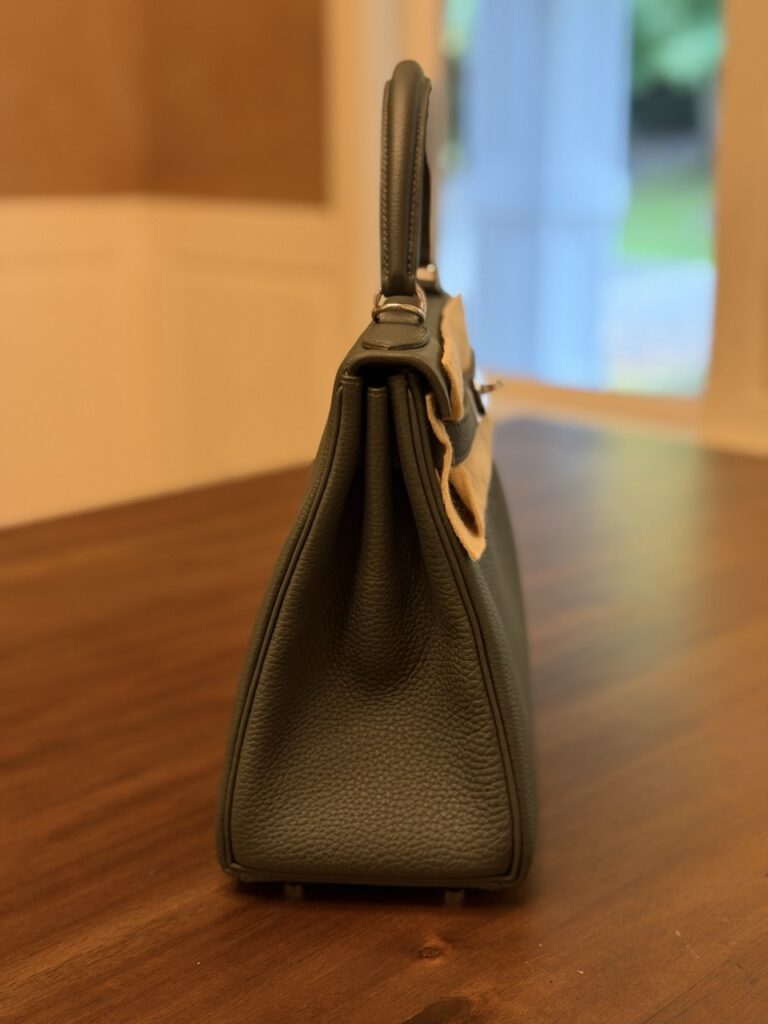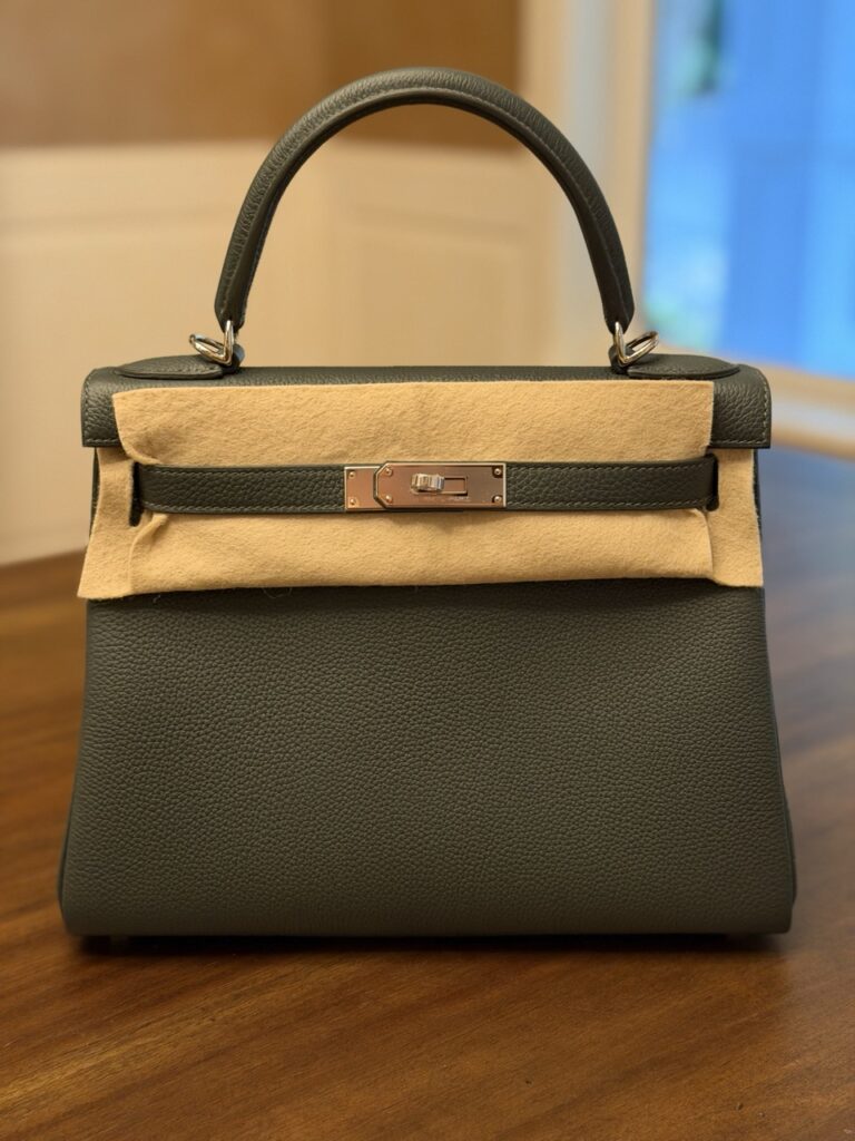 After months of waiting, I got the dream bag I didn’t know I was looking for – an Hermès Kelly 28 retourne in the vert mangrove color. The bag is in Togo leather with palladium hardware, giving it a silver color.