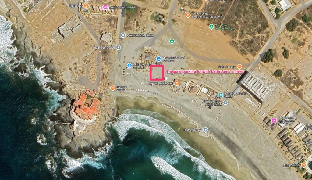 Cerritos Beach has enough modern amenities to make it a great place to spend the whole day. Bathroom facilities are available for a fee, and there’s also a new paid parking lot with an attendant for security. Park in the lot to get access to the bathrooms.